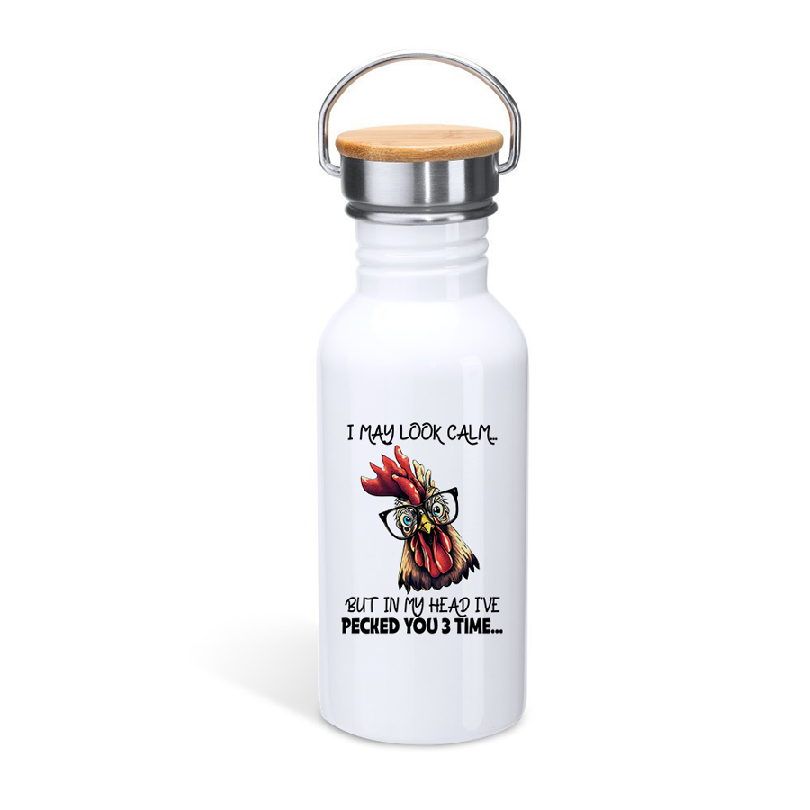 Το Μπουκάλι θερμός με καπάκι μπαμπού 650ml | I may look calm but in my head I’ve pecked you 3 times είναι η τέλεια επιλογή για όσους κρύβουν μια σκανταλιάρικη σκέψη πίσω από το ήρεμο βλέμμα τους!