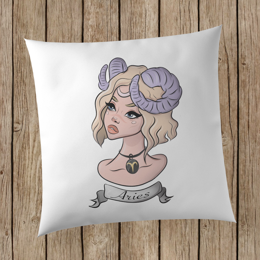 Μαξιλάρι Ζωδίου Κριός – Γυναικείο Σχέδιο με Κέρατα & Στυλ