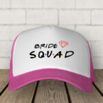 Με το μήνυμα “Bride Squad”, αναδεικνύει την αφοσίωση και την υποστήριξη της παρέας που βρίσκεται πάντα δίπλα στη νύφη. Αυτό το καπέλο θα προσφέρει προστασία από τον ήλιο και θα προσθέσει στυλ σε κάθε στιγμή της διασκέδασης.